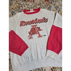 Vintage 90's Arkansas Razorbacks Two Tone Crewneck Sweatshirt Size XL Gray Red