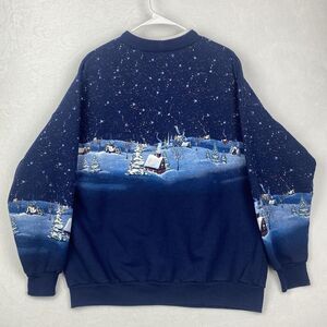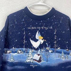 Vintage 90s Artisans Christmas Sweater Adult XL Blue Angel Snow Made In USA