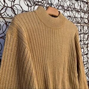 Vintage Ashley Hill gold metallic stripe knit turtleneck sweater lightweight