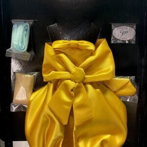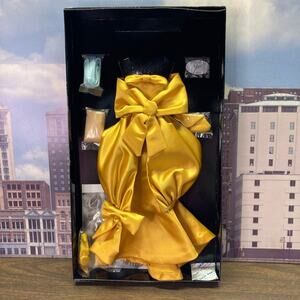 Styled as if from 1957, this outfit comes complete in its box with paperwork and shipper. Includes strapless dress with removable cape/overskirt, gloves, jewelry, hosiery, and shoes! This was displayed on a doll by an adult collector, and everything appears in good order. Some pieces have not been used previously. Will ship in its shipper to save on postage.