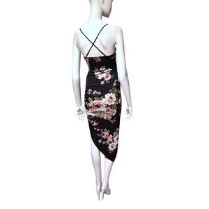 Vintage 90s Asymmetric Slip Dress S Ruched Adjustable Cross Back Romantic Baddie