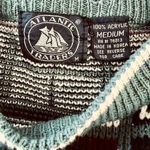Made with 100% acrylic material, this pre-owned sweater is of excellent quality and is ideal for a vintage lover. The brand is Atlantic Traders, which is known for its exceptional quality clothing. This sweater will make a great addition to your wardrobe and is perfect for any 90s-themed party.