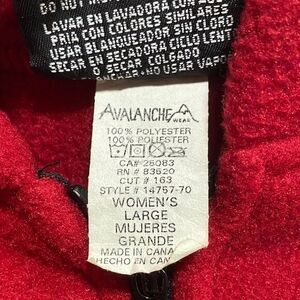 Avalanche Gear hoodie, Malden Mills Polarfleece, women’s large zip-up hoodie, red black fleece jacket, Canadian made outerwear, warm winter hoodie, colorblock zip-up, hiking fleece, outdoor gear, vintage fleece, 90s