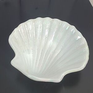 Vintage 90s Avon Glass Clamshell Seashell White Rainbow Iridescent Jewelry Dish