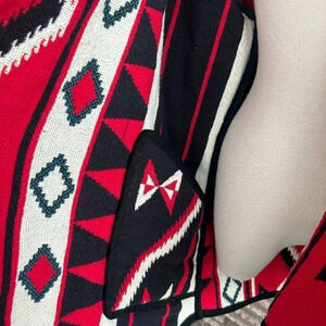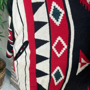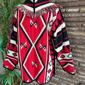 Vintage 90s red and black aztec print reversible tapestry fringe jacket