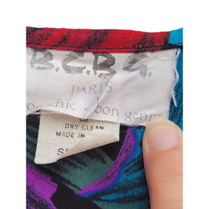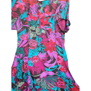 Transport yourself to a world of vintage glamour with our Vintage BCBG Black Purple Red Sheer Tropical Maxi Dress. This enchanting piece features a sweetheart neckline and a side zip for a perfect fit. The sheer fabric, adorned with a tropical pattern in black, purple, and red hues, adds a touch of exotic allure. Embrace the nostalgia of fashion's past with this fit-and-flare maxi dress, an iconic blend of sophistication and tropical charm.