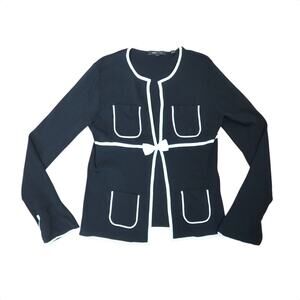 Vintage 90s BCBGMAXAXRIA Black and White Trim Bow Cardigan Sweater M