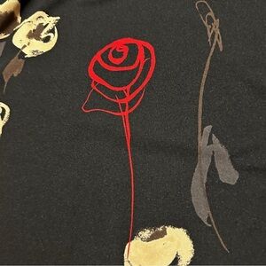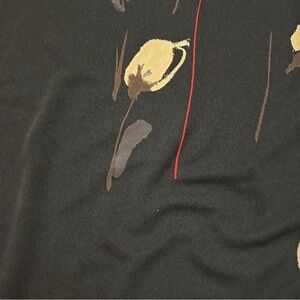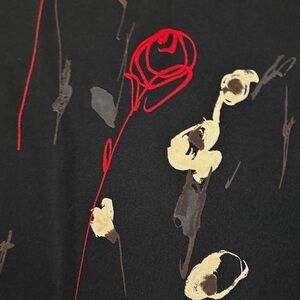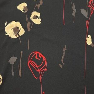 Vintage 90s black maxi skirt with all over red/yellow/beige/brown illustrated flowers. Stretchy and lightweight yet substantial with an elastic waistband. Pre-owned in excellent vintage condition, no holes or stains.
