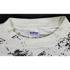 Does have some wash wear as shown in the fade in the black print. Also there are a few paint spots on it from previous owner (barely noticeable). Tag size One Size, but looks to fit about a Men's Size Large in today's sizing.