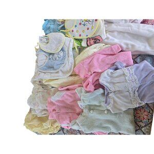 Vintage 90s Baby Bundle 42 Pieces Mixed Items Sizes Pastel Sleepers Bibs Sets