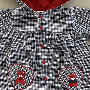 Vintage 90s Baby Girl One Piece Bubble Romper Outfit - Heart Pockets with Bears - Ted Cuffs, Snaps and Lined Hoodie - Snap Crotch