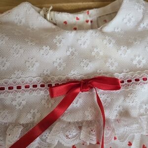 gorgeous red and white lace and ruffle dress. vintage from the 90s. red hearts all over. size 12m. perfect for Christmas or Valentines day