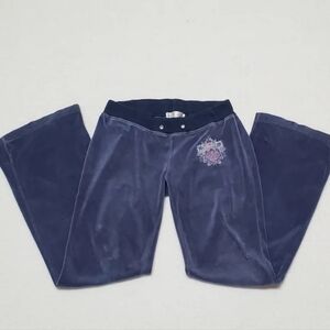 Vintage 90s Baby Phat Blue Velour Hot Pink Embroidered Low Rise Flare Track Pants.