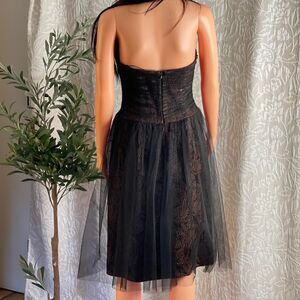 Vintage 90s Badgley Mischka Couture Black Tulle Beaded Jacquard Corset Dress 2