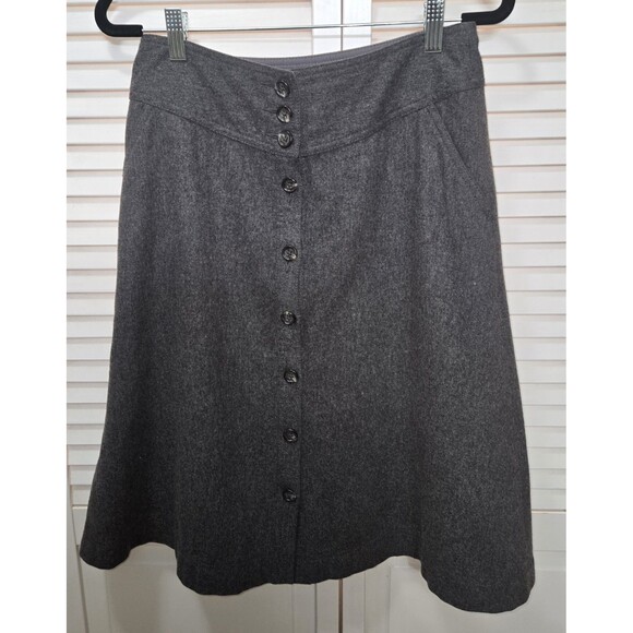 Vintage 90s Banana Republic Wool Grey Button down A-line Midi Skirt Pockets 0