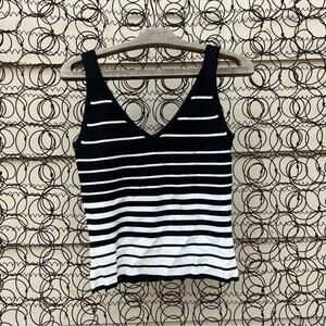 Vintage 90s Barbara Katz black white stripe stretchy tank top MEDIUM