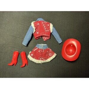 Vintage 90s Barbie Doll Clothes WESTERN FUN Fashion #12780 12778 Red Complete