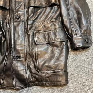 Vintage 90s Barcelino Black Leather Car Coat Men 42 Overcoat Soft Lamb MidLength