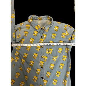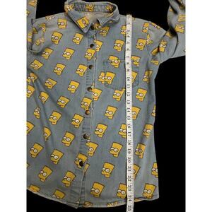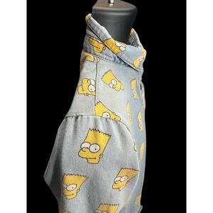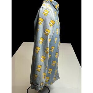 This vintage long-sleeve denim Jacket features an all-over print of Bart Simpson’s face in classic yellow on a light blue denim background. It includes the following details: