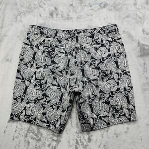 Vintage 90s Basic Editions Shorts Womens XL Black White Paisley Stretch Cotton