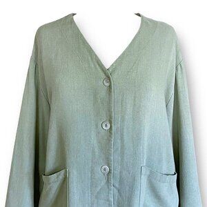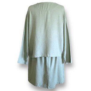 Vintage 90s Basic Threads Women Sage Green Skirt Set M/L Cotton Linen Minimalist