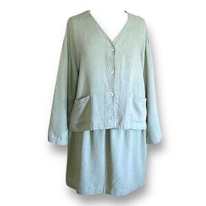 Vintage 90's Basic Threads Santa Monica Sage Green Linen Skirt Set