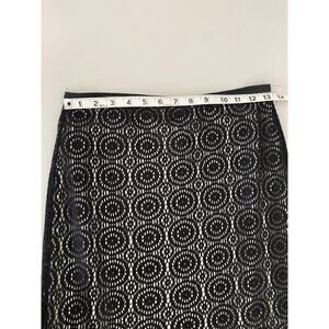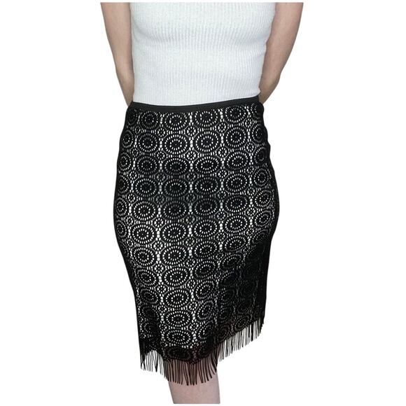 Vintage 90s Bebe Black Lace Fringe Midi Knee Length Stretchy Skirt Small Y2K