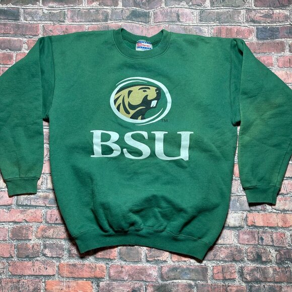 Vintage 90s Bemidji State University Football Sweatshirt Green Size M Beavers