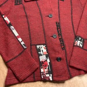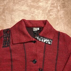 Vintage 90s Bets by Canvasback Patchwork Knit Jacket Red Abstract Geometric Punk