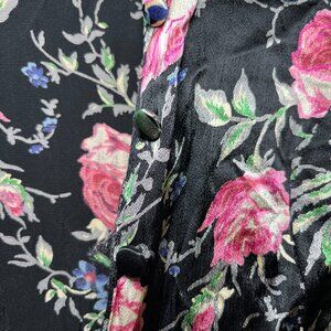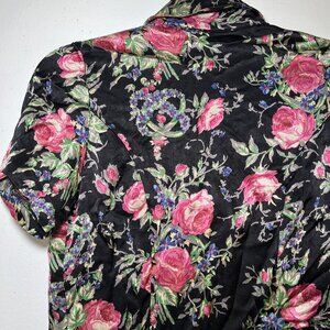 Vintage 90s Betsey Johnson Floral Silk short sleeve Button up Blouse Size 8