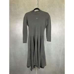 Vintage 90’s Distressed Betsey Johnson Long Sleeve Mock Neck Black Midi Dress Sz Small Made in the US