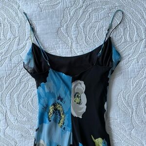 Vintage 90s Betsey Johnson Silk Floral Print Spaghetti Strap Maxi Dress