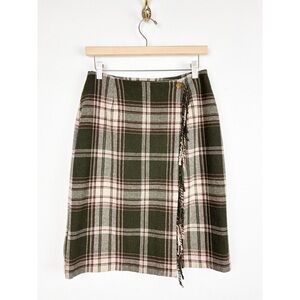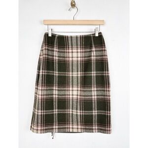 Vintage 90s Bice by Sag Harbor Green Plaid Wool Blend Knee Length Skirt Sz 8