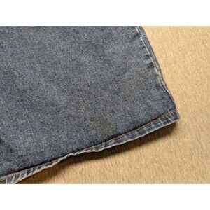 The Vintage 90's Big Mac Workwear Denim Jean Shorts Jorts Y2K Mens 36X8 Baggy is a stylish and nostalgic piece of men's clothing. These Bermuda-style shorts feature a zip closure and button accents, making them perfect for a casual or travel occasion. Made from denim fabric with a high rise, these shorts are designed for a relaxed fit and have a 5-pocket design for added convenience. The blue color and solid pattern give them a timeless appeal, while the 90s theme and hipster style add a touch of retro flair to your wardrobe.