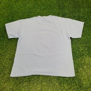 Sky blue pre-shrunk cotton shirt from M&O Knits featuring The Big Lebowski ABIDE graphic, made in Mexico, size XL.