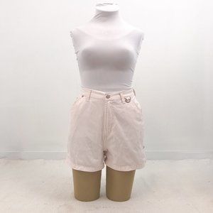 Vintage 90s Bill Blass designer high rise mom Jean Shorts. spring/summer mid-weight cotton high waist denim shorts in pale baby pink. pockets, working buttons. Tiny age dot by front right pocket p8. GUC.