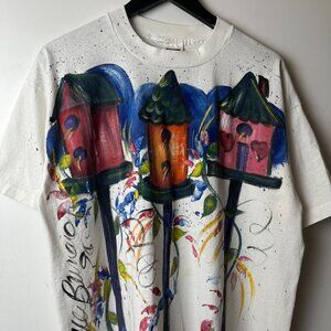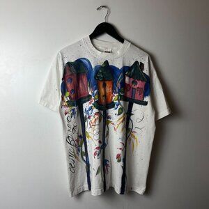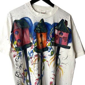 Vintage 90s Bird House Painted T Shirt Adult White XL Extra Large Single Stitch