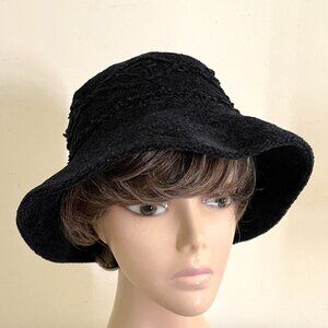 Vintage 90s Black Acrylic Knit Textured Bucket Hat wth 3" brim Collapsable