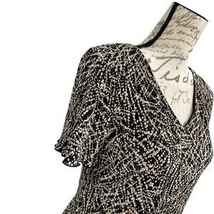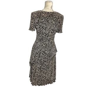 Vintage 90s Black & Cream Asymmetrical Layered Crinkle Chiffon Dress ; Size 8