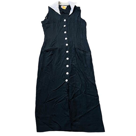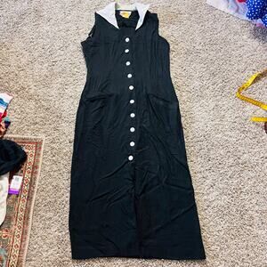 Vintage 90's Black Fitted Button Down Midi Dress M ✨
