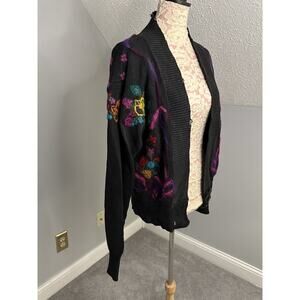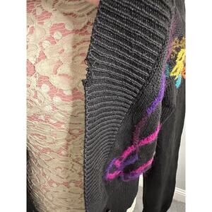 Vintage 90s Black Floral Embroidered Sweater Sz Medium Boho Anthro Vibes Grannie