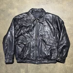 Vintage 90s Black Grunge Oversized Boxy Leather Jacket