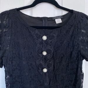 Vintage 90s Black Lace Mini Dress Pearl Buttons Size Small Goth Alt Witchy