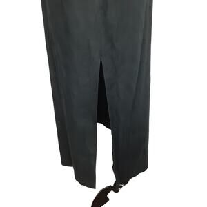 Vintage 90s Black Maxi Dress Halter Tie Neck 100% Linen Back Slit Resort Minimal