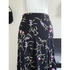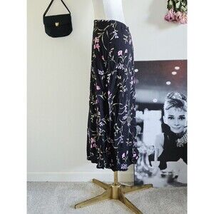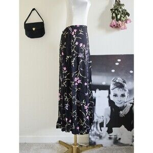 Vintage 90s Black Rayon High Waist Straight Maxi Skirt Sz M