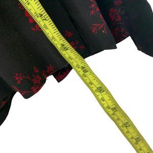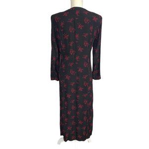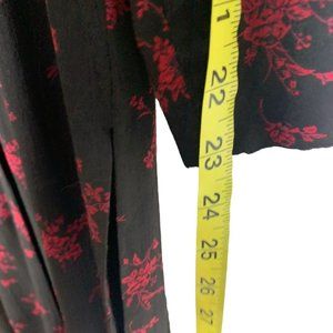 Vintage 90s Black Red Long Sleeve Button Up High Slit Long Top Large