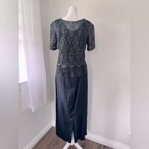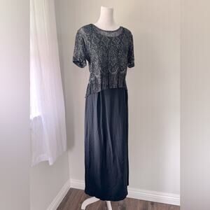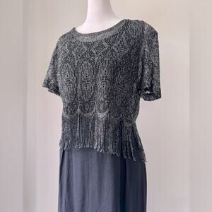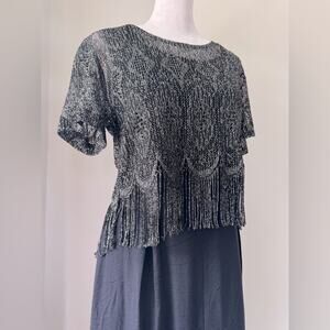 Vintage ‘90s Black Scoop Neck Sleeveless Maxi Dress w/ Metallic Fringed Topper