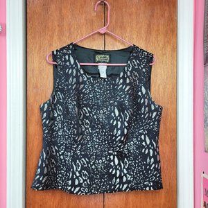 Vintage 90s Black & Silver Leopard Print Sleeveless Top