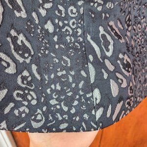 Vintage 90s black & silver leopard print tank top by Champagne. Sleeveless style fitted top with a hidden side zipper. Fabric has a cool raised texture. Tagged size 10, but runs big. Shown modeled on a size 12 mannequin, and it was still loose. Mannequin measures B 40 / W 32 / H 43 (size L). Best fit size 14/16. Please see measurements for details. PM me if you have any questions.