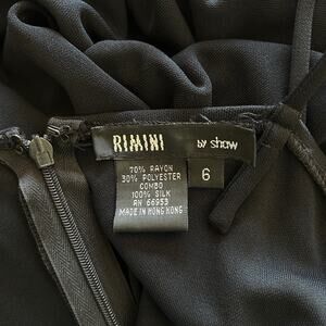 This vintage Rimini by Shaw black slip dress channels Dark Romantic and Whimsigoth aesthetics with a timeless 1990s minimalist silhouette. Made in Hong Kong, it features a sleek body-skimming fit with a stretchy rayon blend, delicate spaghetti straps, and a semi-sheer silk-trim neckline and hemline accented with tonal sequins.